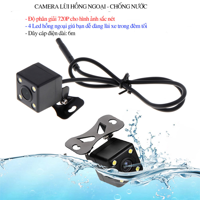 – Camera lùi chống nước 4 Led hỗ trợ lùi xe trong đêm tối.