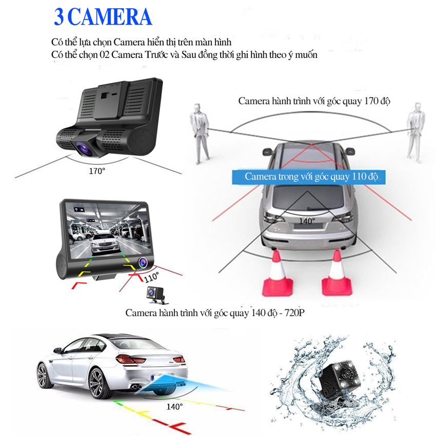 * Camera giám sát hành trình cao cấp tích hợp 3 Camera: là chiếc Camera giám sát hành trình đăc biệt được trang bị và tích hợp tới 3 Camera